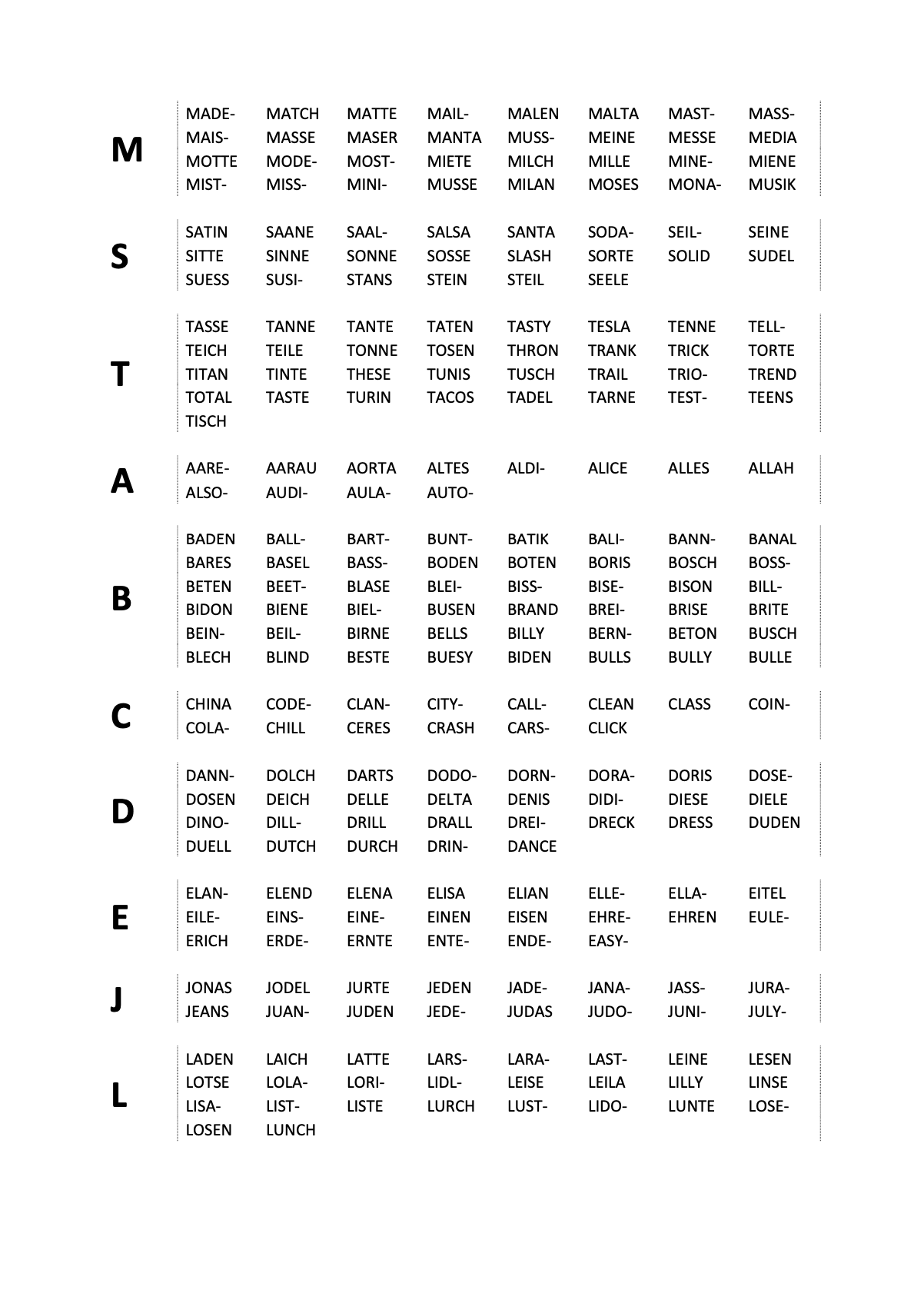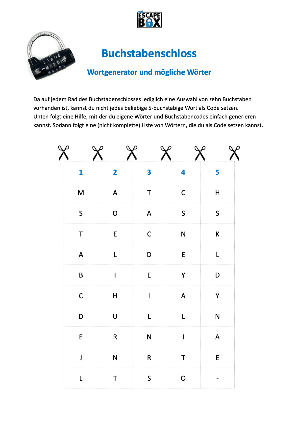 Eine Auflistung mit vielen möglichen Wortkombinationen kann dazu heruntergeladen werden.