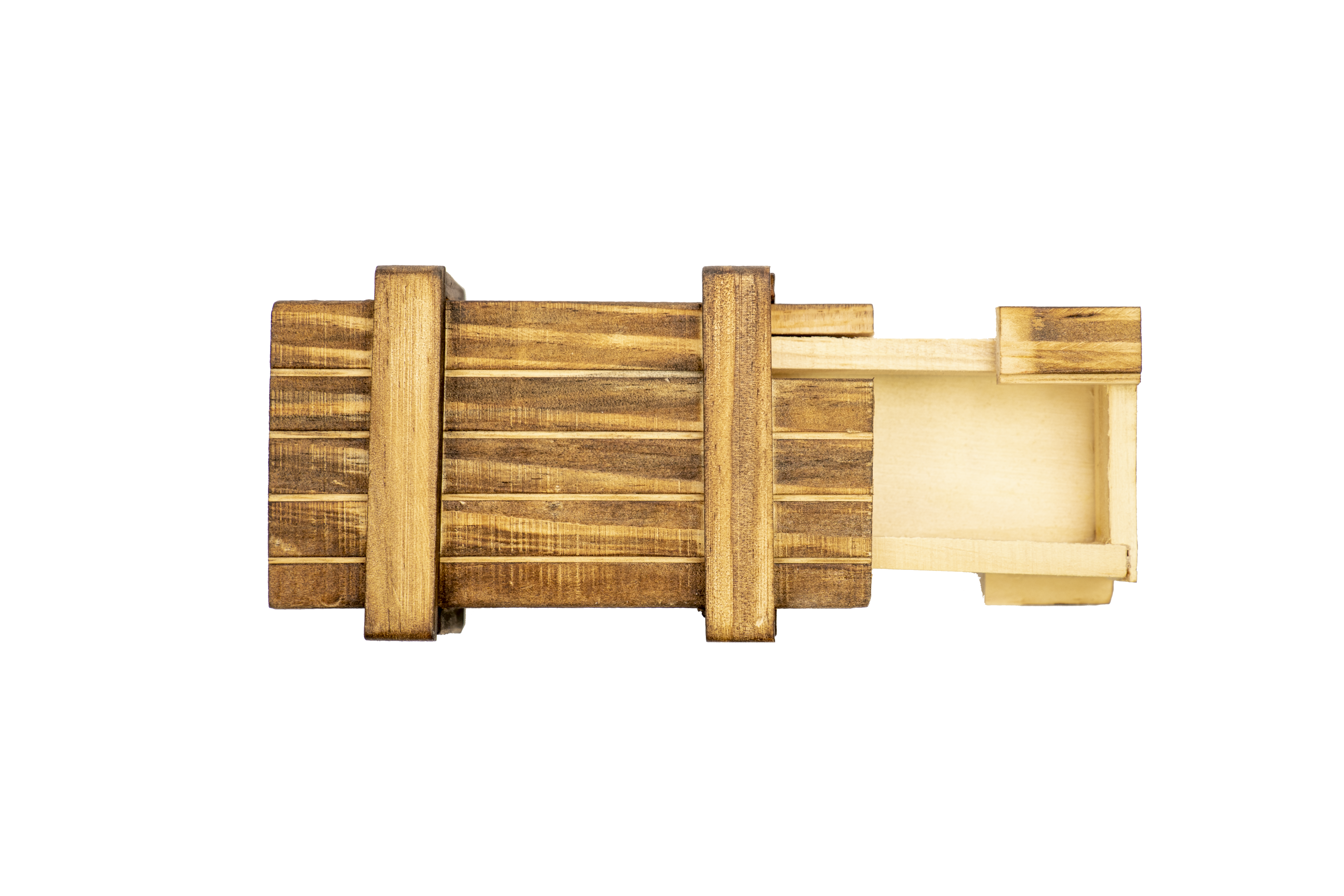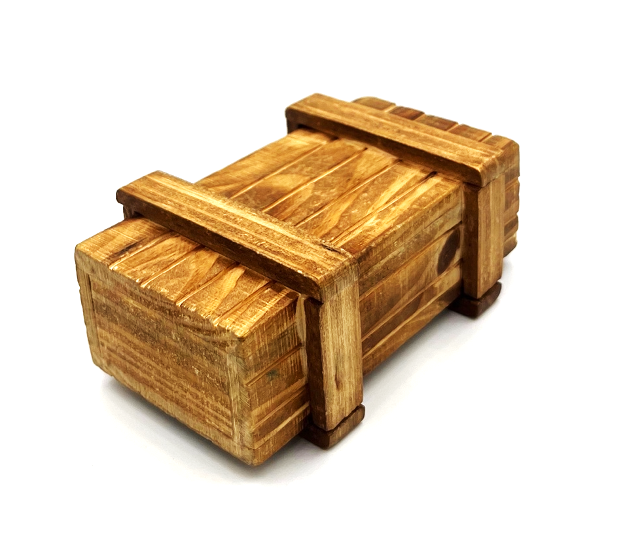 Diese kleine aus Holz gefertigte Knobelbox besitzt eine Geheimschublade, welche nur durch geschicktes Herausziehen geöffnet werden kann.
