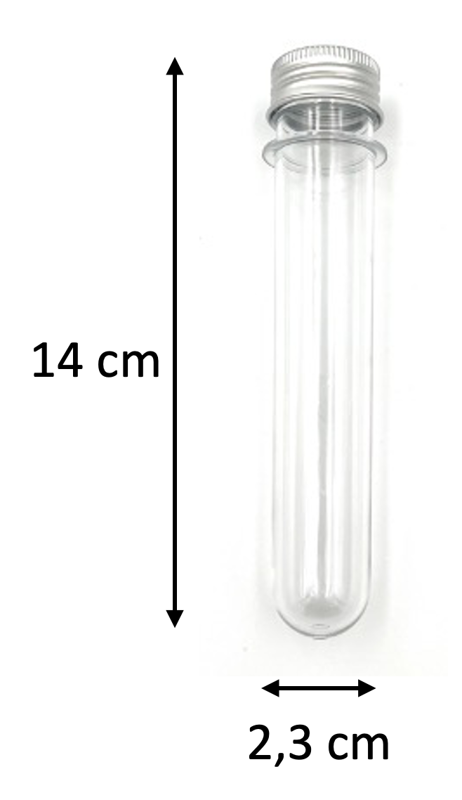 Diese Reagenzröhrchen aus Kunststoff lassen sich mit beliebigem Material (Flüssigkeiten oder feste Gegenstände wie z.B. Smarties, Steinchen, Sand, usw.) befüllen.