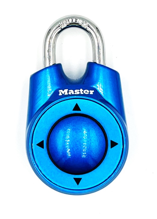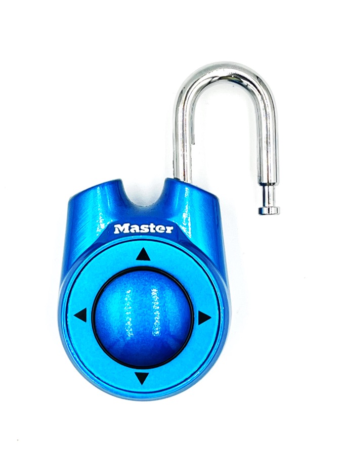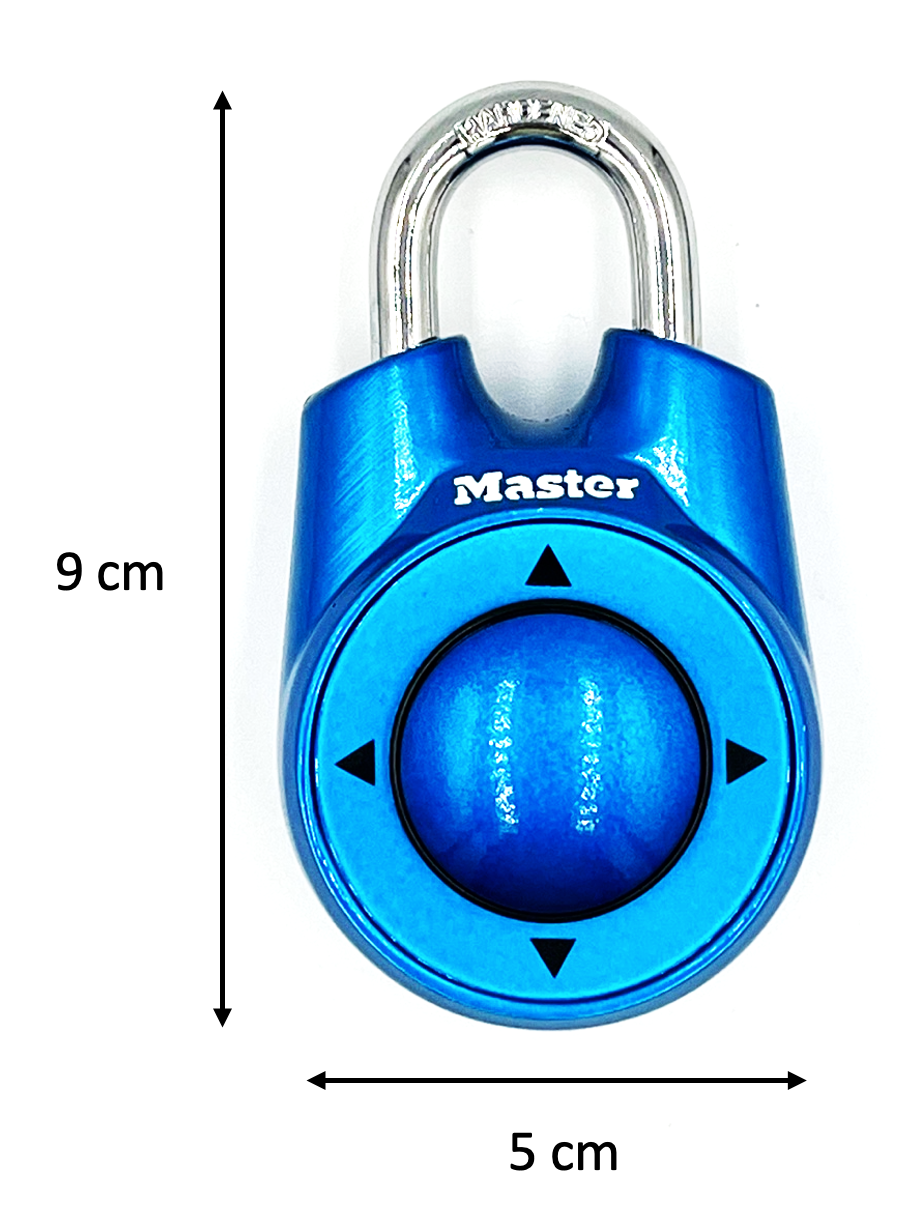 Der Code dieses coolen Schlosses wird mit Hilfe eines Steuerknopfes, der mit dem Daumen in die vier Himmelsrichtungen bewegt werden kann, eingestellt.